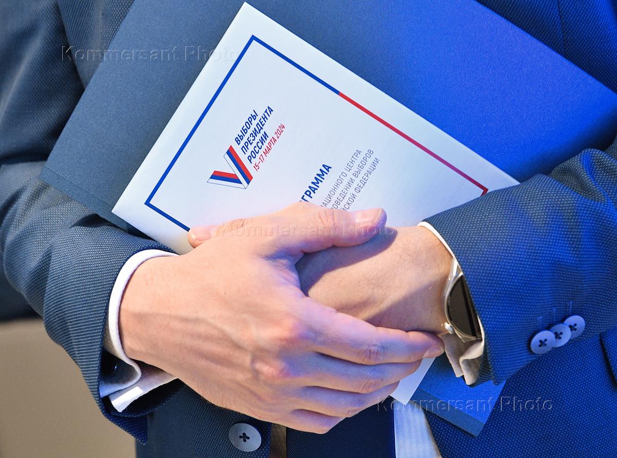 Выборы президента России. Работа Информационного центра Центральной избирательной комиссии (ЦИК) России. Заместитель председателя ЦИК России Николай Булаев во время работы центра.