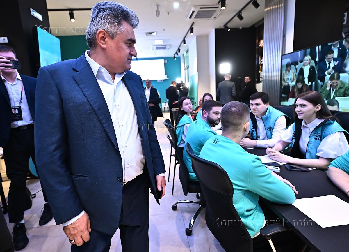 Russian presidential elections. The work of the headquarters of the Russian presidential candidate from the New People party, Deputy Chairman of the State Duma of Russia Vladislav Davankov. Head of the faction of the New People party in the State Duma of Russia Alexei Nechaev (left) during a visit to the headquarters.