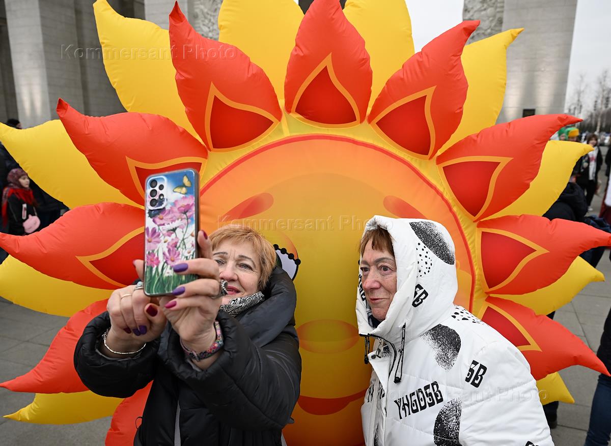 Celebration of Wide Maslenitsa. Celebrations on the main alley of VDNH. Genre photography.