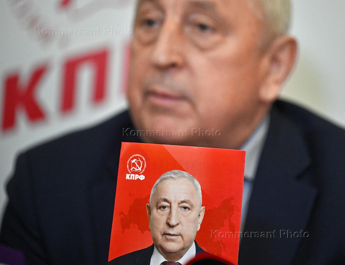 Выборы президента России. Работа Центрального штаба Коммунистическая партия России (КПРФ) по выборам в здании ЦК КПРФ. Кандидат на должность президента России от КПРФ, председатель комитета Государственной думы (ГД) России по развитию Дальнего Востока и Арктики Николай Харитонов во время брифинга по итогами выборов.