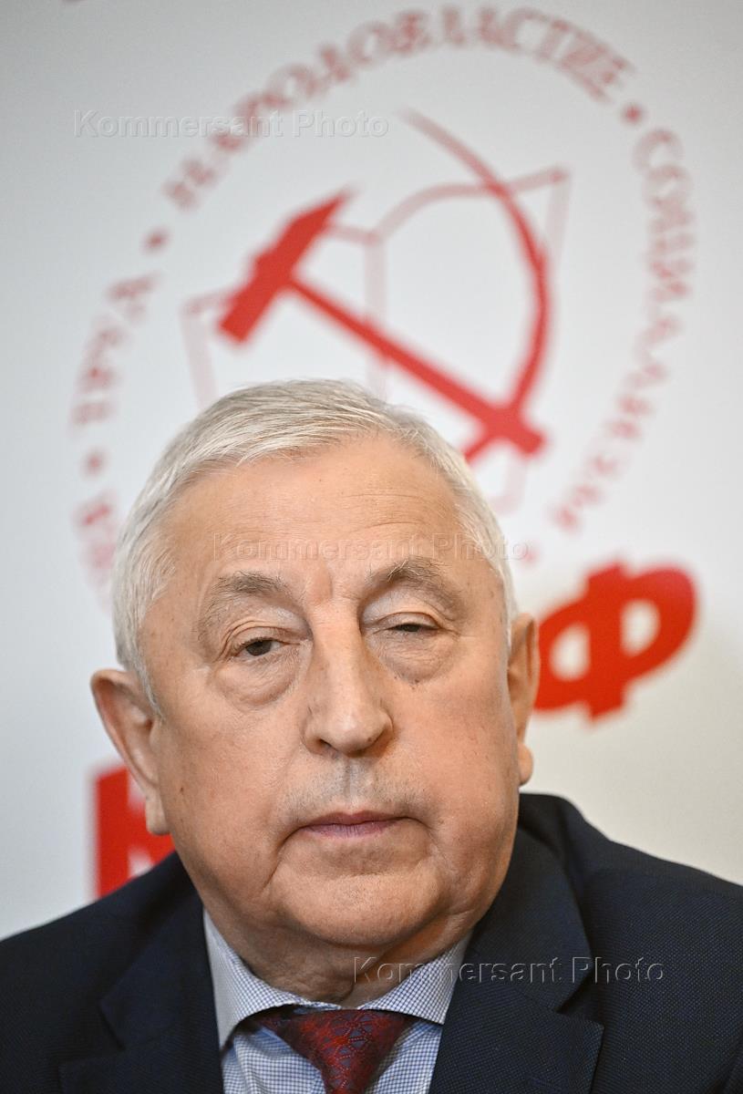 Выборы президента России. Работа Центрального штаба Коммунистическая партия России (КПРФ) по выборам в здании ЦК КПРФ. Слева направо: председатель комитета Государственной думы (ГД) России по аграрным вопросам Владимир Кашин, лидер КПРФ, руководитель фракции КПРФ в ГД России Геннадий Зюганов и кандидат на должность президента России от КПРФ, председатель комитета ГД России по развитию Дальнего Востока и Арктики Николай Харитонов во время брифинга по итогами выборов.
