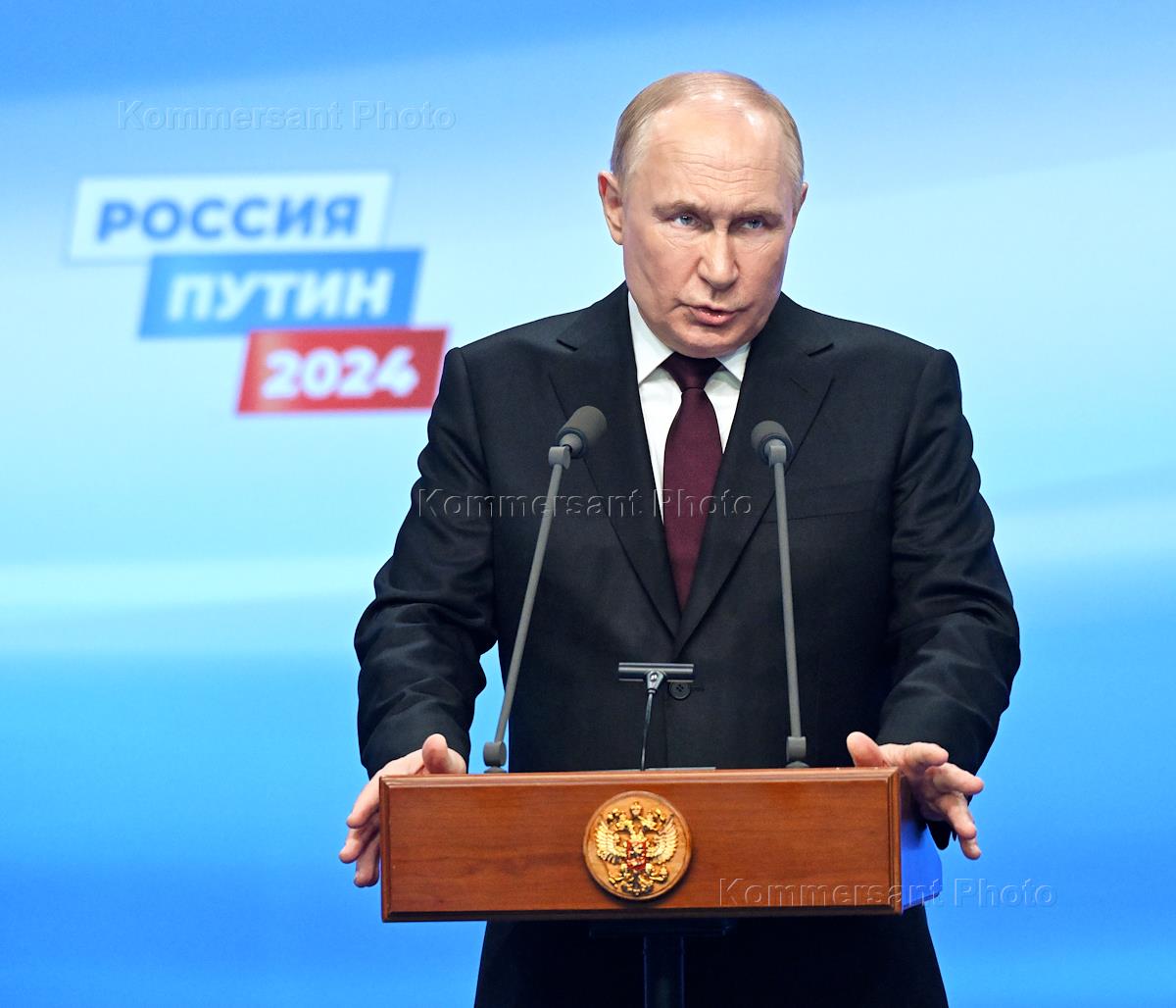 Russian presidential elections. The work of the pre-election headquarters of Russian presidential candidate Vladimir Putin in Gostiny Dvor. Russian presidential candidate and current Russian President Vladimir Putin speaks to reporters at his campaign headquarters.