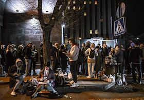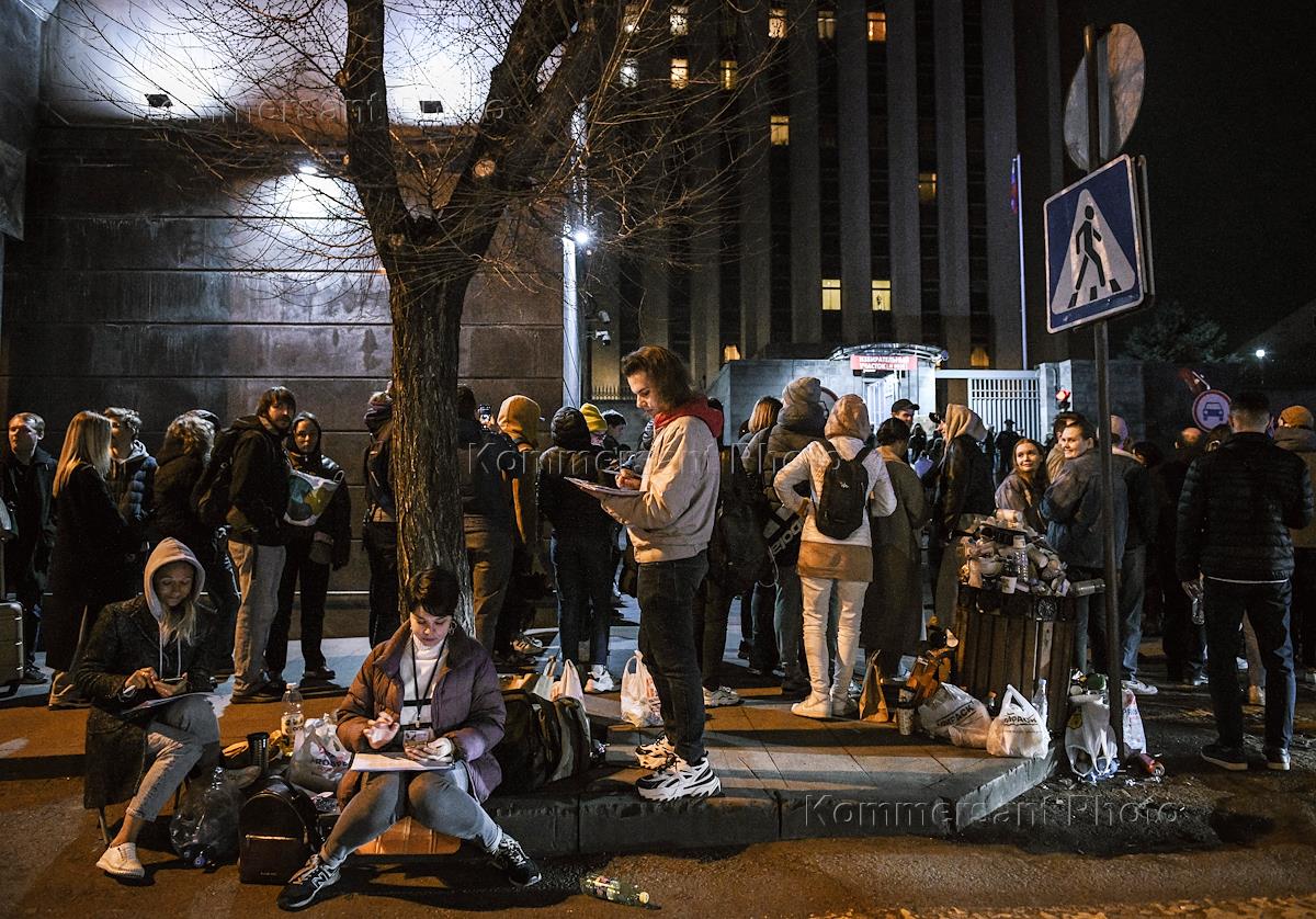 Выборы президента России. Голосование за рубежом. Голосование на избирательном участке в посольстве России в Ереване. Люди в очереди на входе в здание посольства.