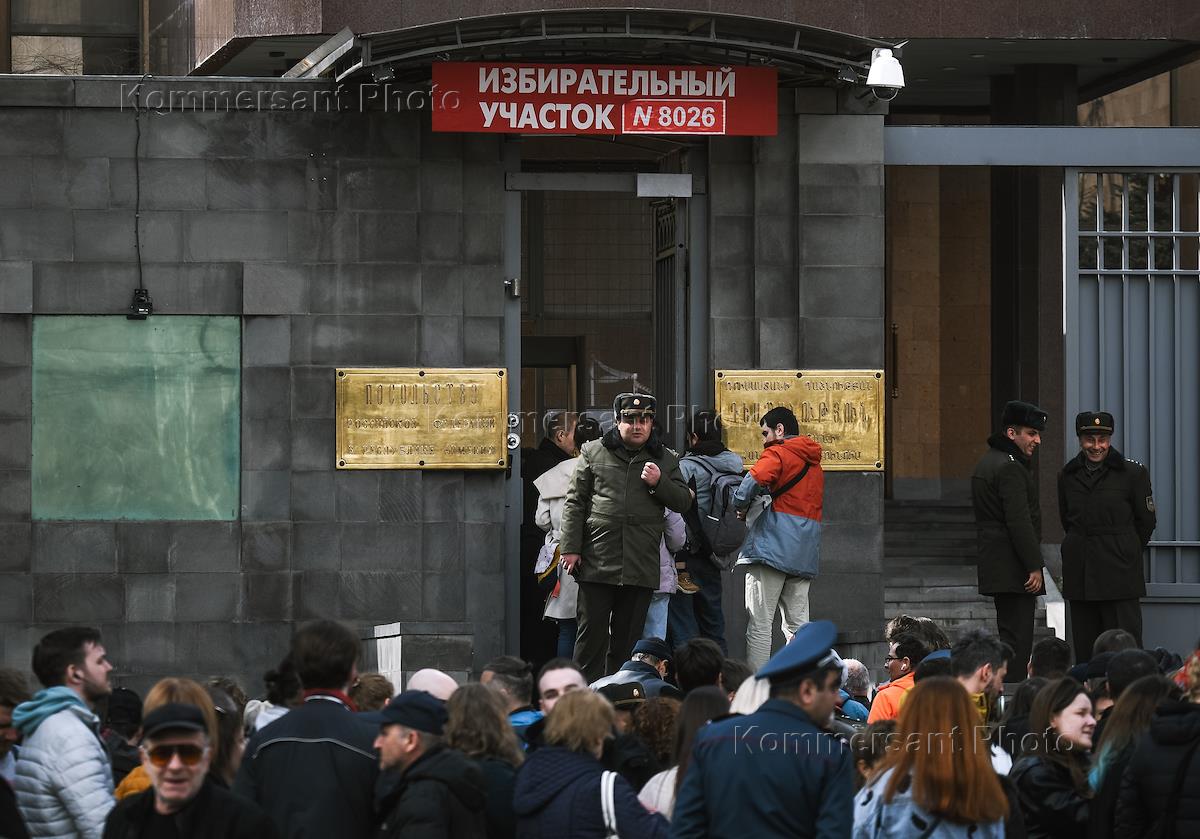 Russian presidential elections. Voting abroad. Voting at a polling station at the Russian Embassy in Yerevan.