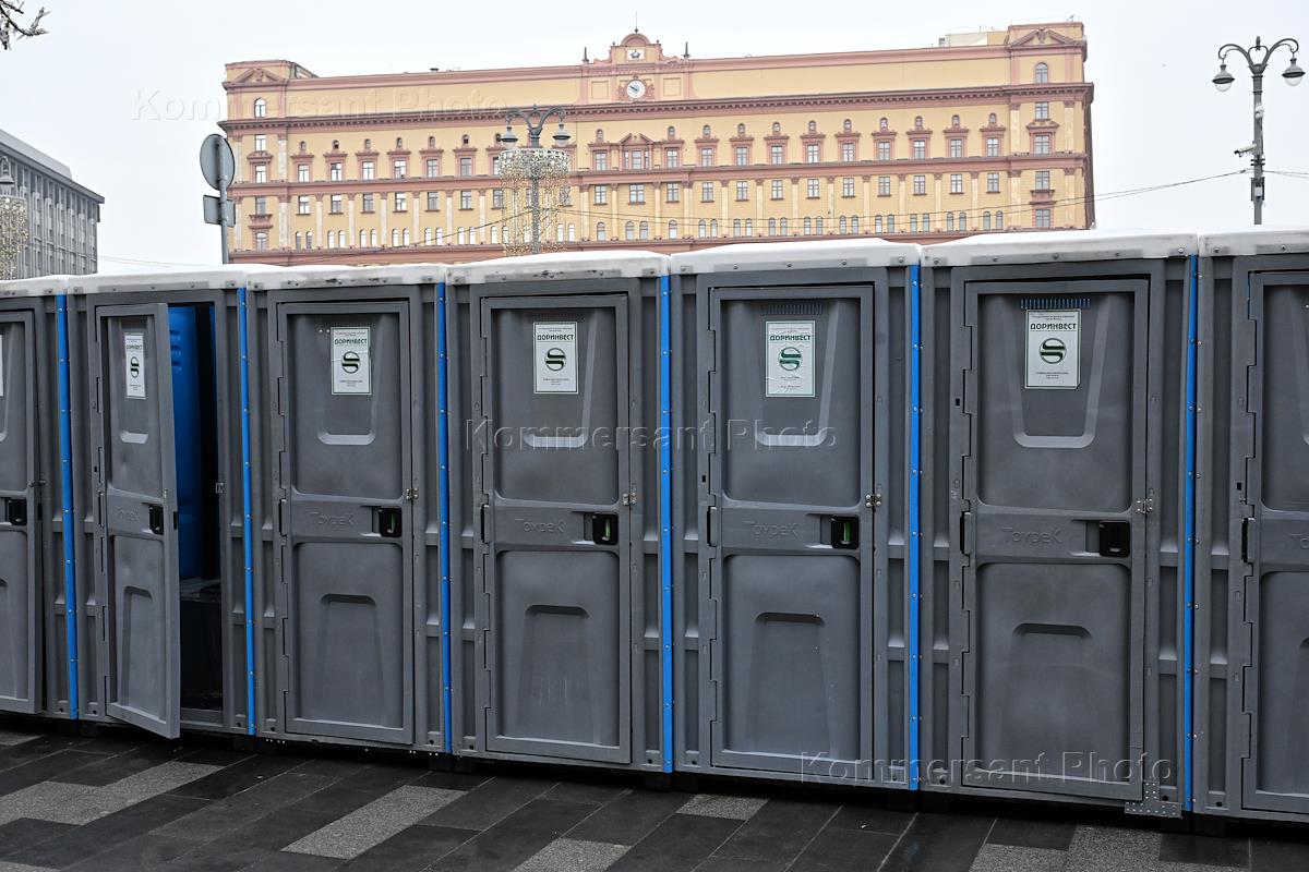 Views of Moscow. Genre photography. Mobile toilet cabins.
