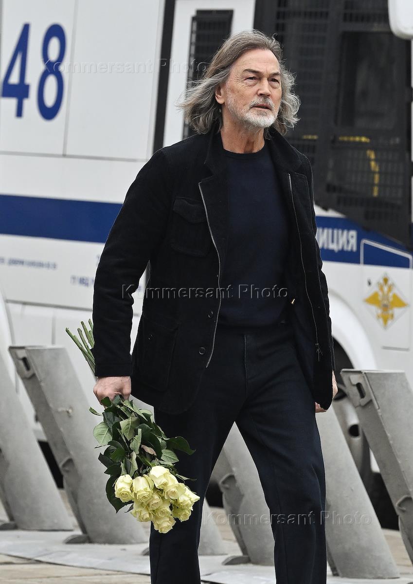 Farewell ceremony for the actor, director and president of the Moscow Academic Theater of Satire Alexander Shirvindt at the Moscow Academic Theater of Satire. Artistic director of the Ermolova Theater, actor Oleg Menshikov before the ceremony.