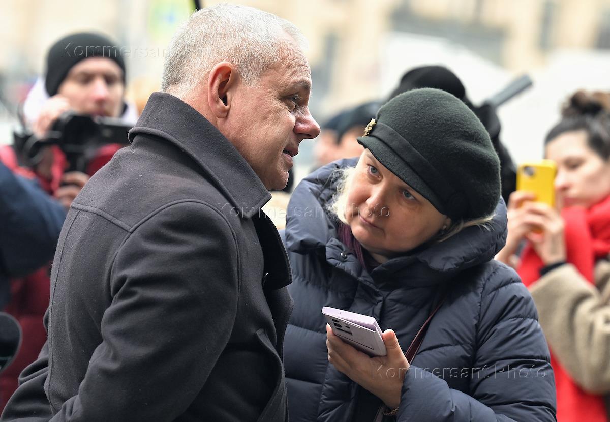 Церемония прощания с актером, режиссером и президентом Московского академического театра сатиры Александром Ширвиндтом в Московском Академическом Театре Сатиры. Специальный представитель президента России по международному культурному сотрудничеству Михаил Швыдкой перед началом церемонии.