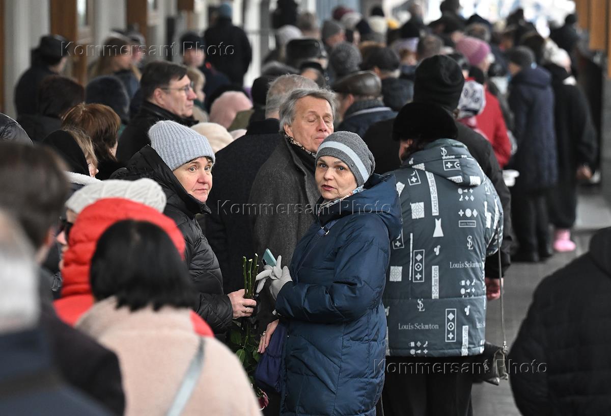 Farewell ceremony for the actor, director and president of the Moscow Academic Theater of Satire Alexander Shirvindt at the Moscow Academic Theater of Satire. People line up before the ceremony.
