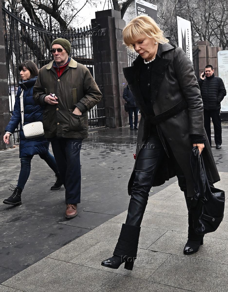 Церемония прощания с актером, режиссером и президентом Московского академического театра сатиры Александром Ширвиндтом в Московском Академическом Театре Сатиры. Актриса Мария Казакова (в центре) перед началом церемонии.