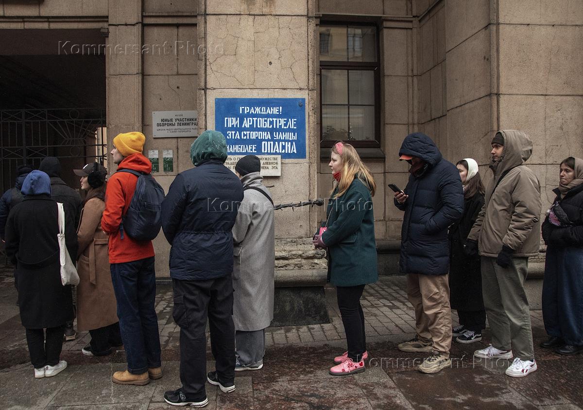 Выборы президента России. Избиратели в очереди на избирательный участок.