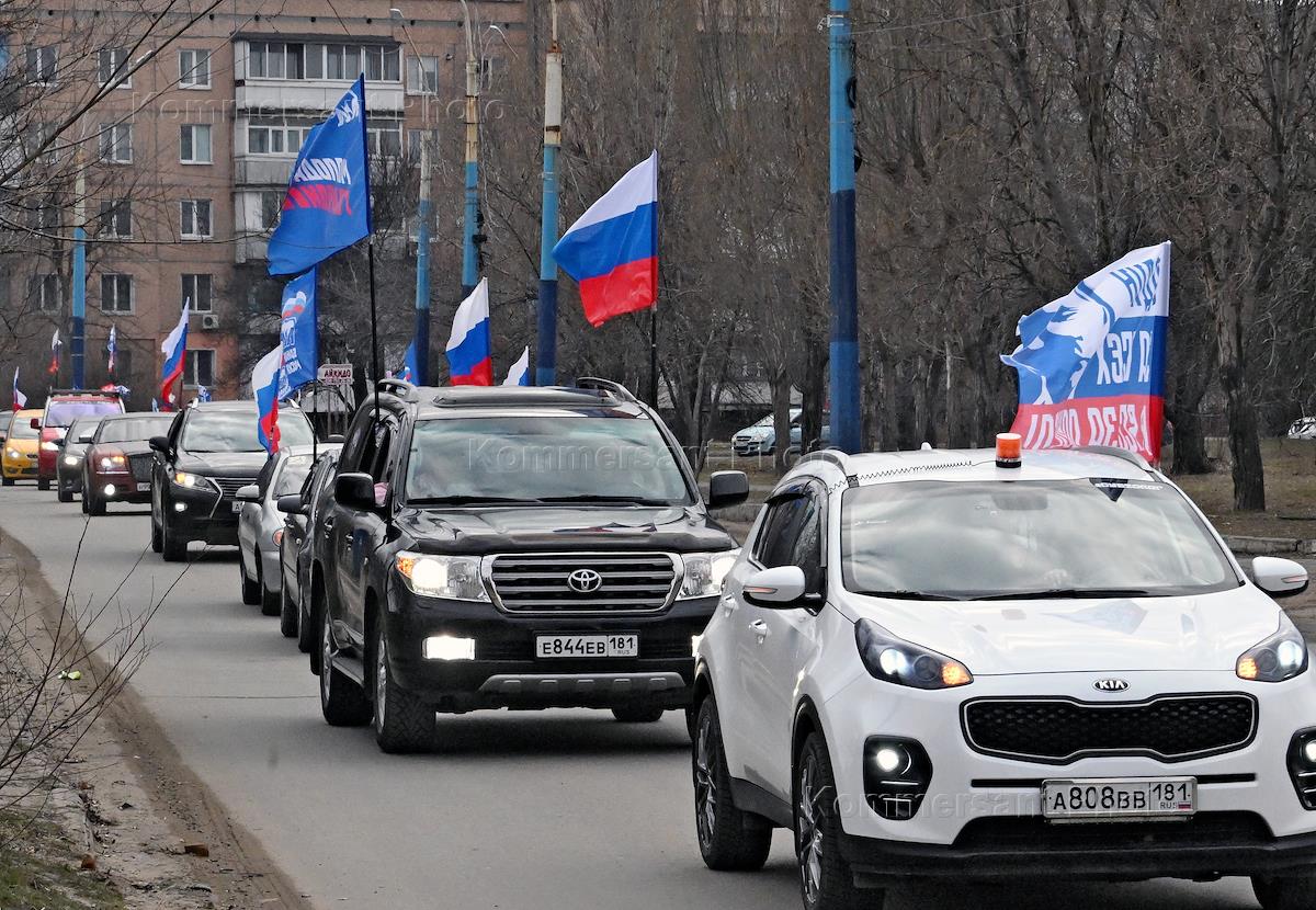 The car rally "For Putin!", organized by the regional branch of the United Russia party, in honor of the victory of President Vladimir Putin in the presidential elections in Russia. Participants of the rally.
