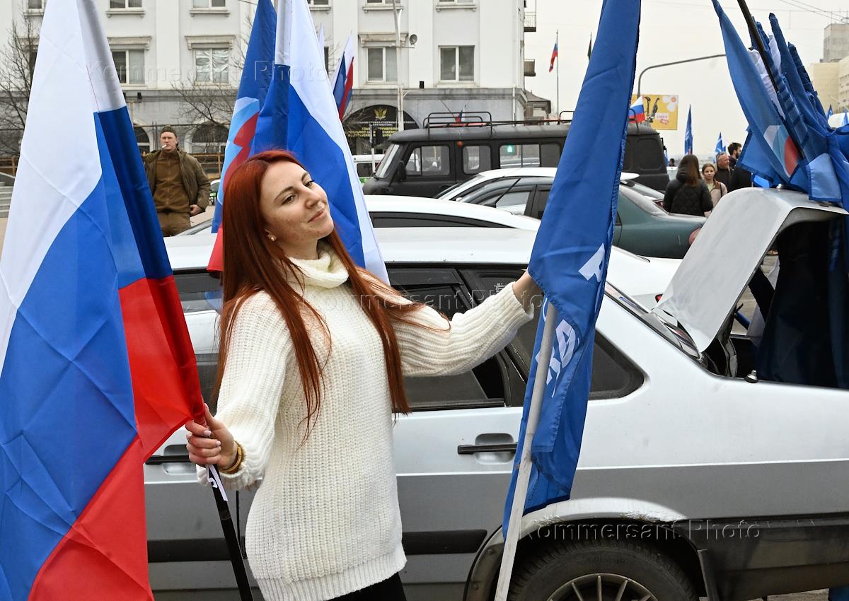 The car rally "For Putin!", organized by the regional branch of the United Russia party, in honor of the victory of President Vladimir Putin in the presidential elections in Russia. Participants of the rally.