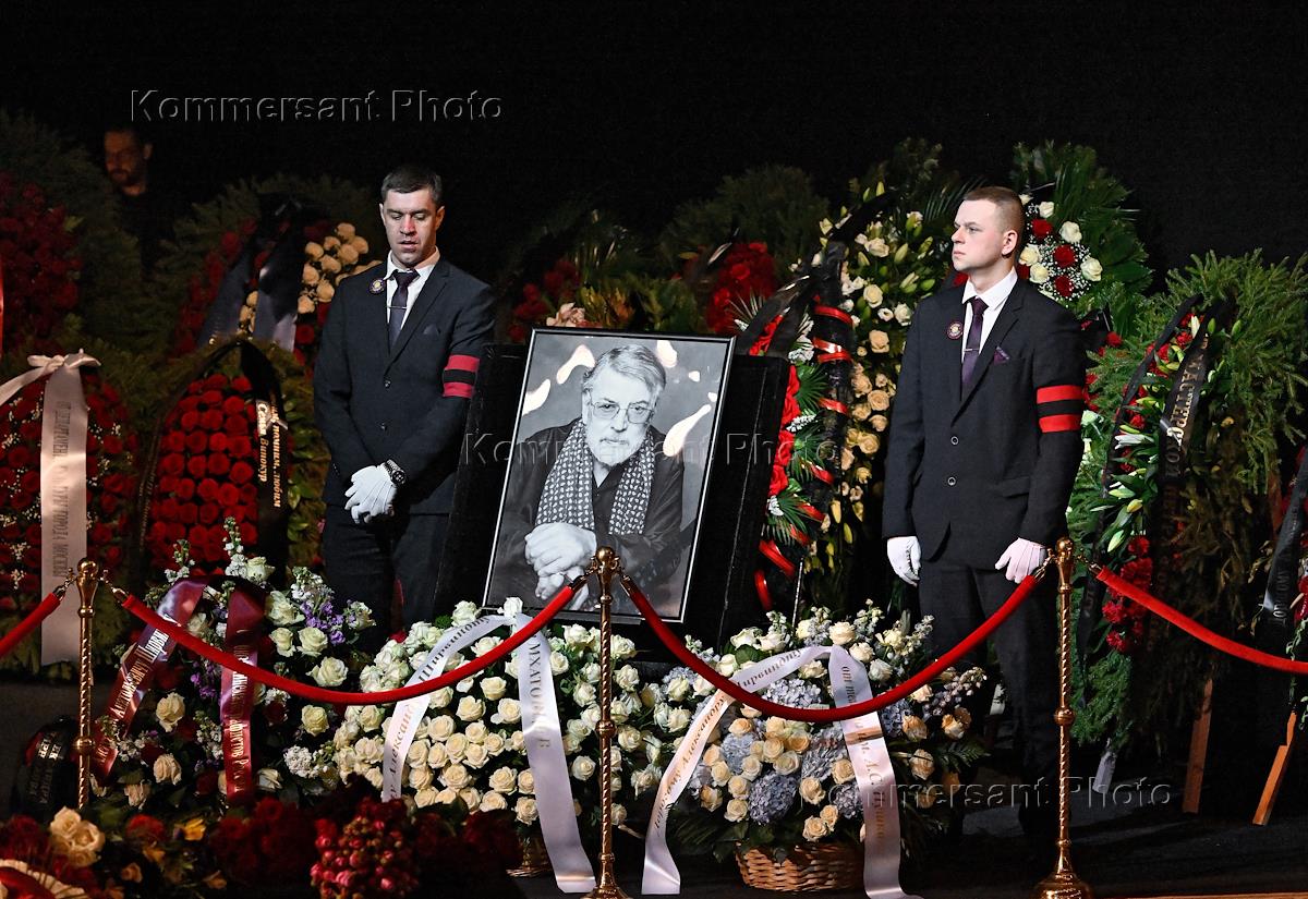 Церемония прощания с президентом Московского академического театра Сатиры Александром Ширвиндтом в Московском академическом театре Сатиры. Телеведущий, сын Александра Ширвиндта Михаил Ширвиндт (в центре) на церемонии.