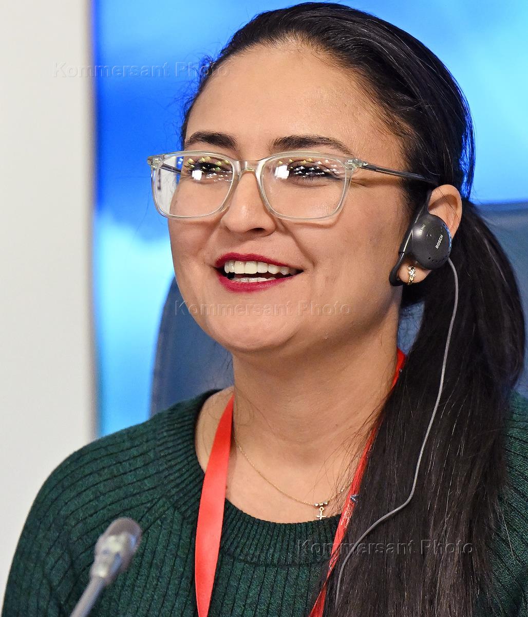 Press conference dedicated to the results of the work of international observers at the 2024 Russian presidential elections at the TASS press center. Deputy of the Legislative Assembly of the Republic of El Salvador Rocio Yamilet Menjivar Tejada (El Salvador) during the press conference.