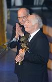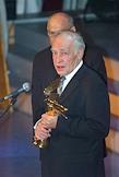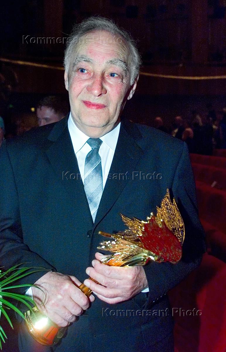 Вручение кинематографической премии "Ника" за 2000 год в номинации за честь и достоинство актеру Вячеславу Тихонову (слева). Церемония награждения состоялась в Доме кино.