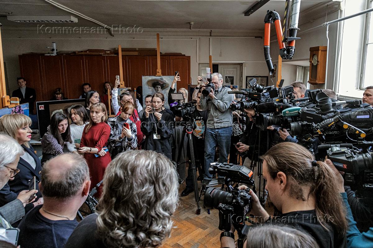 Press screening of paintings damaged by a rocket explosion in the Taganrog Museum after restoration in the State Russian Museum.