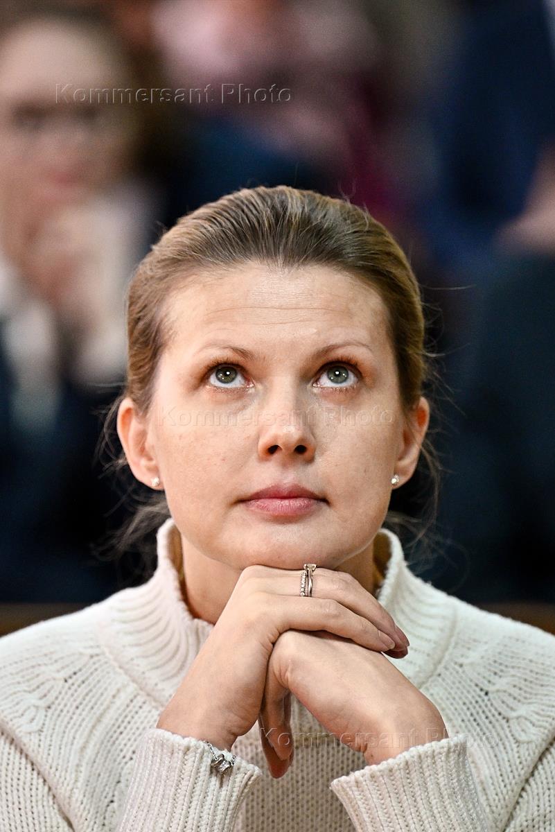 The announcement of the verdict to the former Deputy Minister of Education of Russia Marina Rakova and the rector of the Moscow Higher School of Social and Economic Sciences (Shaninka) Sergei Zuev, accused of embezzling 50 million rubles, in the Nikulinsky District Court. Former Deputy Minister of Education of Russia Marina Rakova during the court hearing.