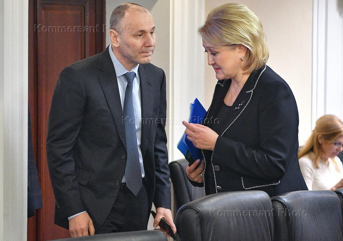 Round table on the topic “Reducing the bureaucratic burden in the education system” in the Federation Council (FC) of Russia. Deputy Minister of Education of Russia Tatyana Vasilyeva (left) and head of the Federal Service for Supervision in Education and Science (Rosobrnadzor) Anzor Muzaev (right) during a round table.