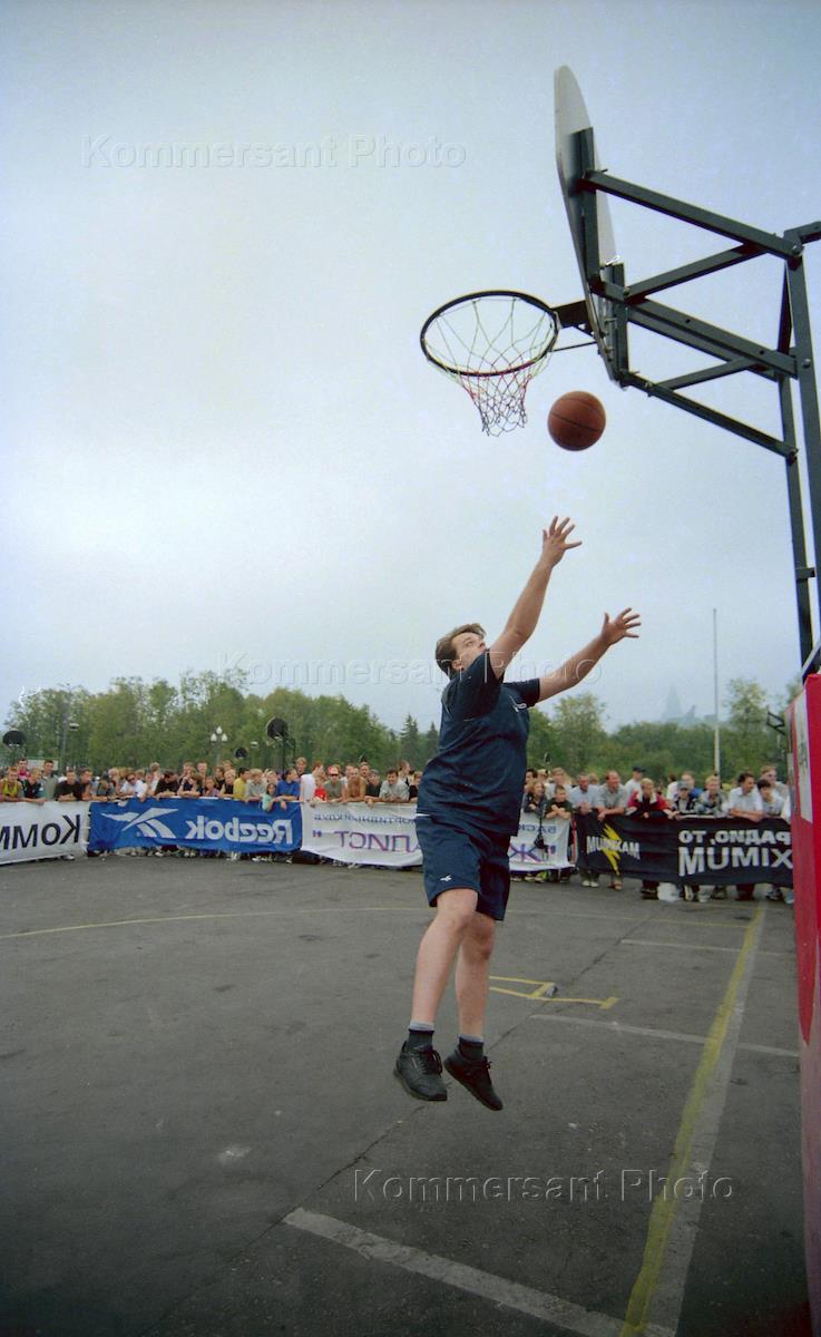 Спортивный комментатор Василий Уткин во время соревнований по стритболу.