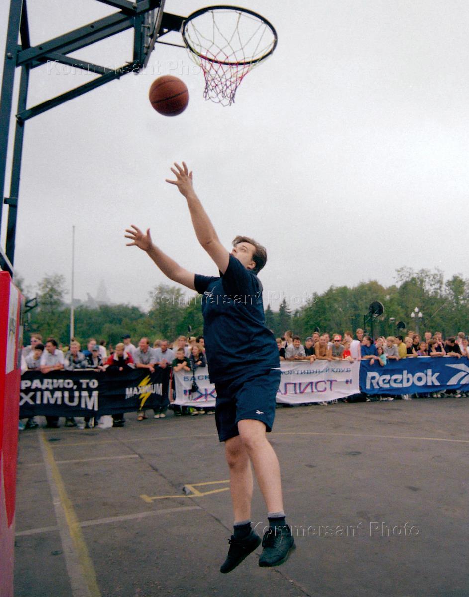 Спортивный комментатор Василий Уткин во время соревнований по стритболу.