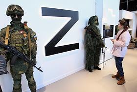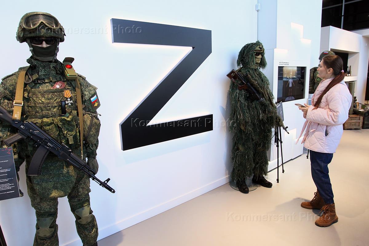 Церемония открытия Нижегородского музея СВО в бывших помещениях Дома книги. Манекены в обмундировании разных родов войск и буква Z.