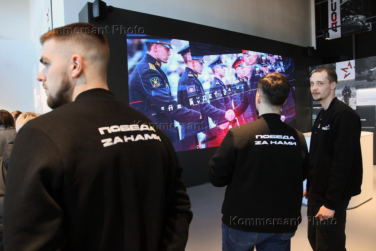 Церемония открытия Нижегородского музея СВО в бывших помещениях Дома книги. Экскурсоводы в майках с надписью "Победа zа нами".