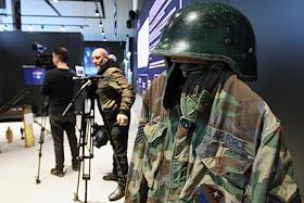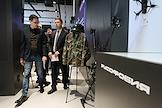 Церемония открытия Нижегородского музея СВО в бывших помещениях Дома книги. Телеоператоры около трофейного обмундирования с символикой ВВС США US Air force.