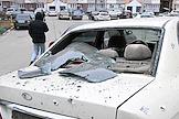 Ситуация в Белгороде. Последствия обстрела ВСУ. Поврежденный результате обстрела автомобиль со стикером эмблемой ЧВК "Вагнер".
