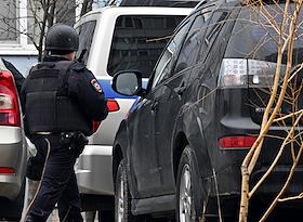 Ситуация в Белгороде. Последствия обстрела ВСУ. Сотрудник полиции во дворе многоэтажного жилого дома частично разрушенного в результате обстрела.