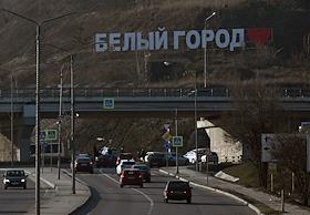 Виды Белгорода. Жанровая фотография. Надпись "Белый город" на въезде в город.