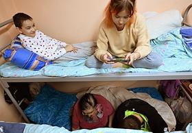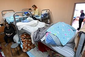 Пункт временного размещения в Старом Осколе. Жители Белгорода и Грайворонского городского округа, вынужденно оставившие свои дома из-за обстрелов, в спальном помещении пункта.