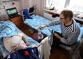 Пункт временного размещения в Старом Осколе. Жители Белгорода и Грайворонского городского округа, вынужденно оставившие свои дома из-за обстрелов, в кабинете оказания медицинской помощи.