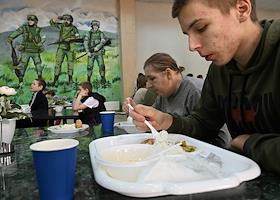 Пункт временного размещения в Старом Осколе. Столовая для жителей Белгорода и Грайворонского городского округа, вынужденно оставившие свои дома из-за обстрелов.