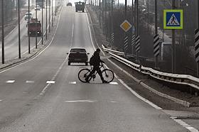 Виды Белгородской области. Жанровая фотография. Мужчина с велосипедом на пешеходном переходе.