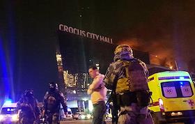 Теракт в концертном зале "Крокус Сити Холл" во время концерта группы "Пикник". От двух до пяти человек напали на концертный зал, произошла стрельба и пожар в здании зала. Сотрудники правоохранительных органов на месте происшествия.