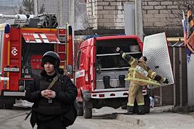 Ситуация в Белгороде. Последствия обстрела города со стороны Вооруженных сил Украины (ВСУ). Сотрудники пожарной службы МЧС во время тушения пожара в частном жилом доме, пострадавшем в результате обстрела. По сообщению губернатора Белгородской области Гладкова, в результате воздушной атаки со стороны ВСУ погиб по меньшей мере один человек, 14 многоквартирных жилых домов повреждены.