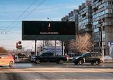Акция памяти жертв теракта в подмосковном концертном зале "Крокус Сити Холл" в Новосибирске. Светодиодный уличный экран с горящей свечой и надписью "Скорбим 22.03.2024".