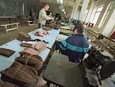 Заключенные колонии для осужденных сотрудников МВД работают в пошивочной мастерской.