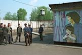 Заключенные колонии для осужденных сотрудников МВД идут на работу в мастерские.