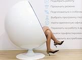 Жанровая фотография. Женщина в кресле на фоне рекламы услуг кадрового (рекрутингового) агентства.