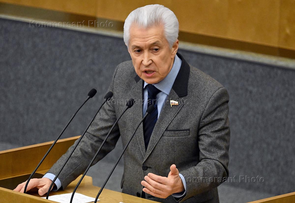 Пленарное заседание Государственной думы (ГД) России. Руководитель фракции "Единая Россия" в ГД России Владимир Васильев во время выступления на заседании.