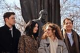 Церемония открытия памятника народному артисту СССР Михаилу Ульянову в парке "Михайловский сад". Слева направо: депутат Московской городской Думы, художественный руководитель Театра Луны Евгений Герасимов, актриса Ирина Купченко и скульптор Андрей Балашов во время церемонии.