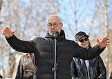 Церемония открытия памятника народному артисту СССР Михаилу Ульянову в парке "Михайловский сад". Директор Государственного академического театра имени Евгения Вахтангова Кирилл Крок во время церемонии.