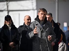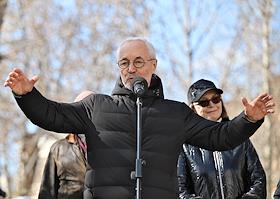 Церемония открытия памятника народному артисту СССР Михаилу Ульянову в парке "Михайловский сад". Ректор театрального училища имени Щукина Евгений Князев во время церемонии.