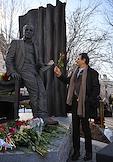 Церемония открытия памятника народному артисту СССР Михаилу Ульянову в парке "Михайловский сад". Ректор театрального училища имени Щукина Евгений Князев (справа) во время церемонии.