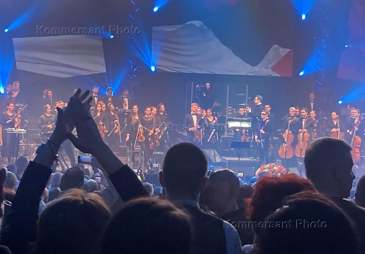 Концерт группы "Пикник" памяти жертв террористической атаки на "Крокус сити холл" в Большом концертном зале (БКЗ) "Октябрьский". Музыканты симфонического оркестра "Таврический" во время концерта.