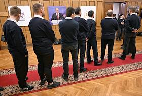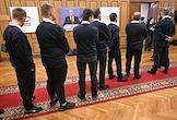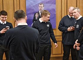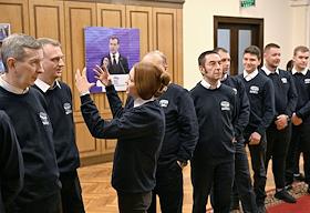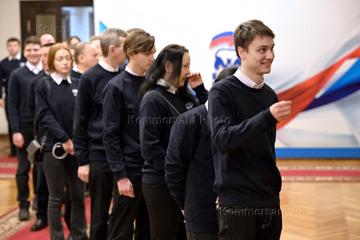 Совместное заседание комитета Государственной думы (ГД) России по безопасности и противодействию коррупции и комитета ГД России по молодежной политике на тему "Противодействие вовлечению молодежи в преступные сообщества и меры по ограничению влияния деструктивного контента" в ГД России. Сотрудники ООО "Ивент-Сэйфити", перед началом церемонии награждения за участие по спасению зрителей во время теракта в концертном зале "Крокус Сити Холл" 22 марта 2024 года, в здании Государственной думы России.