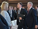 Заседание итоговой коллегии Федеральной службы России по ветеринарному и фитосанитарному надзору (Россельхознадзор). Министр сельского хозяйства России Дмитрий Патрушев (слева) и руководитель Россельхознадзора Сергей Данкверт (в центре) на заседании.