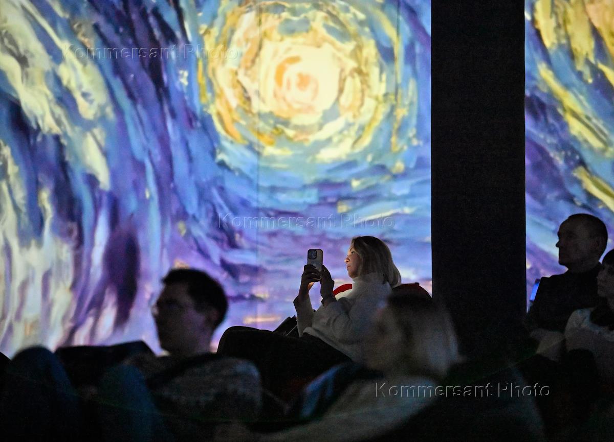 Exhibition "Van Gogh. Revived Canvases" on the territory of the Lumiere Hall space. Visitors at the exhibition.