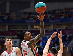 Единая лига ВТБ по баскетболу. Матч между командами ЦСКА (Москва) - "Локомотив-Кубань" (Краснодар) на спортивной арене "Мегаспорт". Игрок команды ЦСКА Мело Тримбл (справа) во время матча.